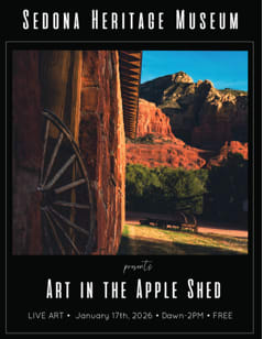 Admission to the Sedona Heritage Museum will be free for the day. The Museum will operate its normal hours, 11 am to 3 pm, but visitors are encouraged to come early, stay late, and enjoy the art. Art in the Apple Shed is produced by TAC. The event is a collaboration between the Museum and TAC. The Artists Consortium was founded in 2024 by Skip Daum and seeks to bring artists together in a public forum.