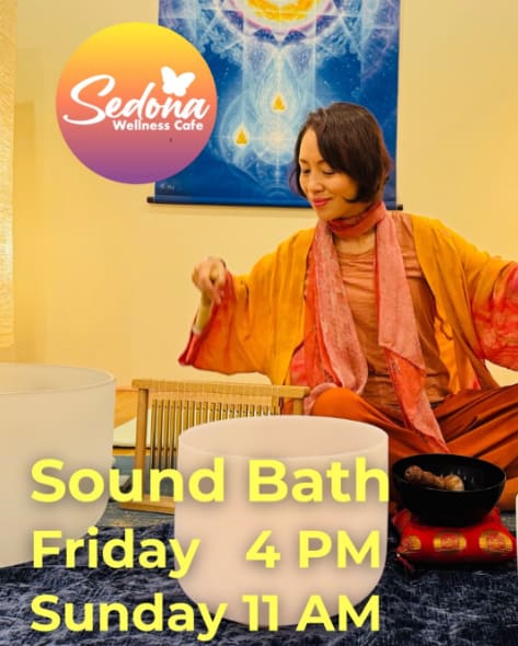 🌀 Sunday Sound Bath at Sedona Wellness Cafe 🌀 ⠀ Come home to yourself through sound. ✨ Join us every Sunday as we bathe in the healing vibrations of crystal bowls, gongs, chimes, and sacred instruments that awaken the soul and bring peace to the body. ⠀ 💫 Melt away stress 💫 Balance your energy 💫 Deepen your inner stillness ⠀ 📍 Sedona Wellness Cafe 🗓 Sundays | ⏰ 11 am - 12:15 pm