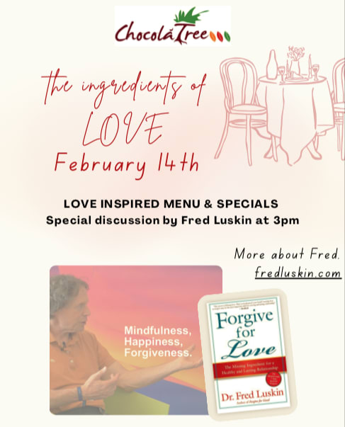 Join us all day for love inspired meals, and at 3pm for a special discussion by Fred Ludskin. No RSVP needed (large groups RSVP recommended).